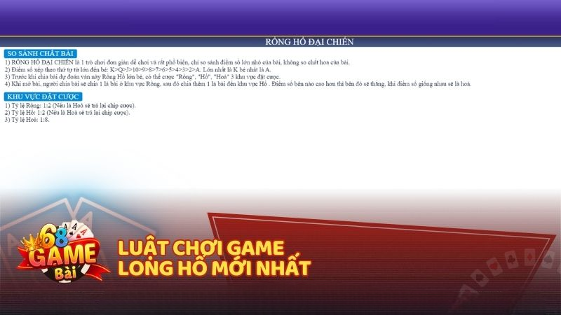 Luật chơi và các cửa cược trong Long Hổ